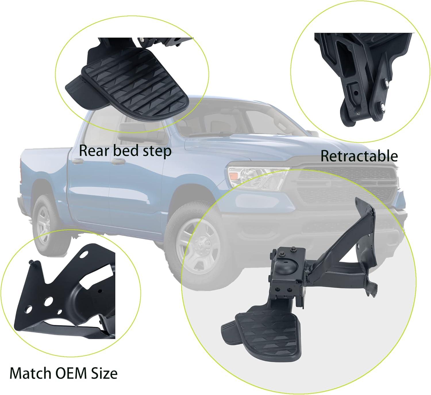 Bed Step Retractable Bumper Truck Tailgate Step Compatible with 2019-2022 Dodge Ram 1500DT(New Body Style) Replaces 82215289AG 82215289AH
