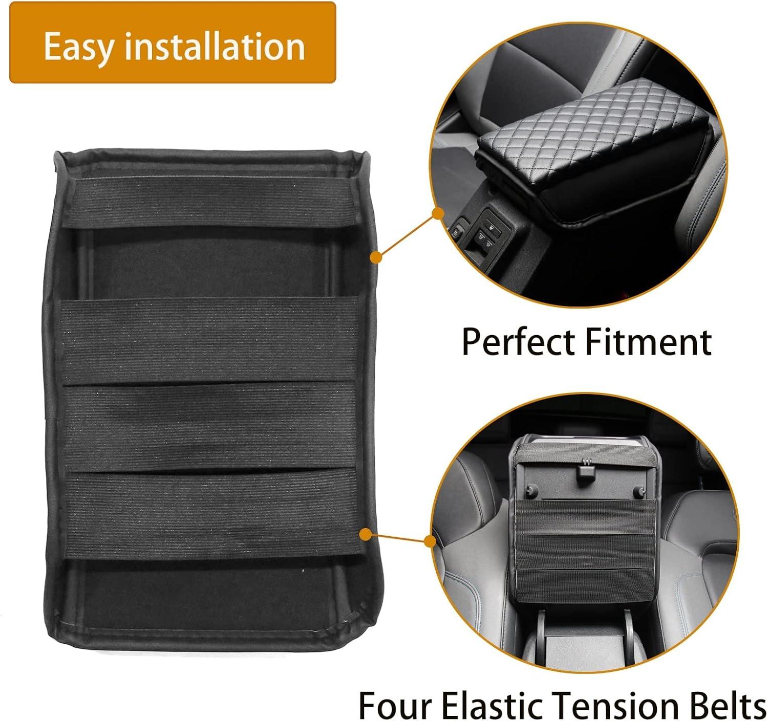 [Easy Installation]Designed with a flexible elastic straps to fix it on the center console (No need of any tools). It doesn't change the open/close function of the arm rest due to its super stretch and pull resistant.