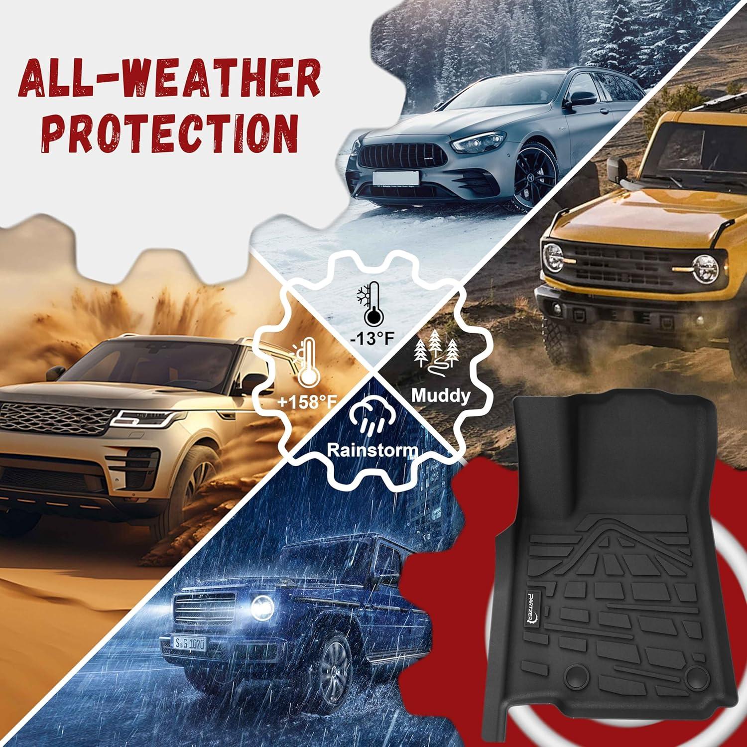 Non-Slip Safety: Deep treads and anti-skid backing keep car mats for 2021-2025 Jeep Grand Cherokee L (6-seater w/o 2nd row center console) securely in place, even during rugged driving