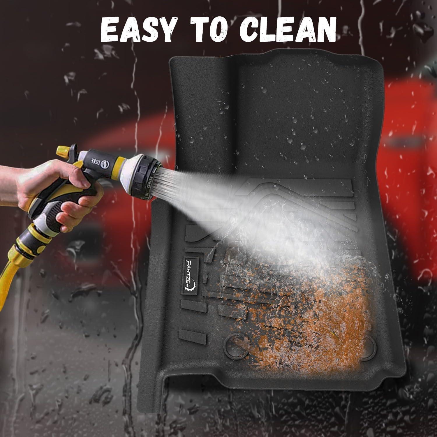 Easy Cleanup: Spills and stains wipe away effortlessly—just rinse with a hose or wipe with a damp cloth to maintain cleanness for PARTZER floor liners compatible with 2021-2024 2025 Jeep Grand Cherokee L