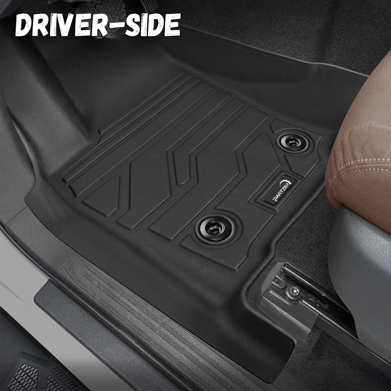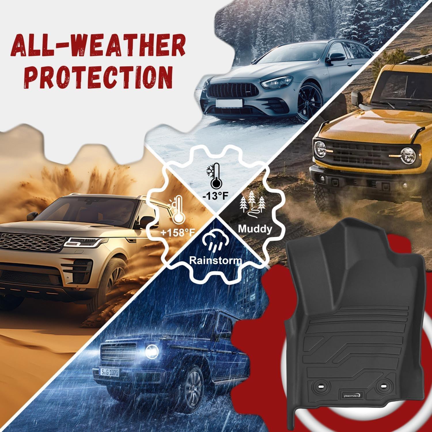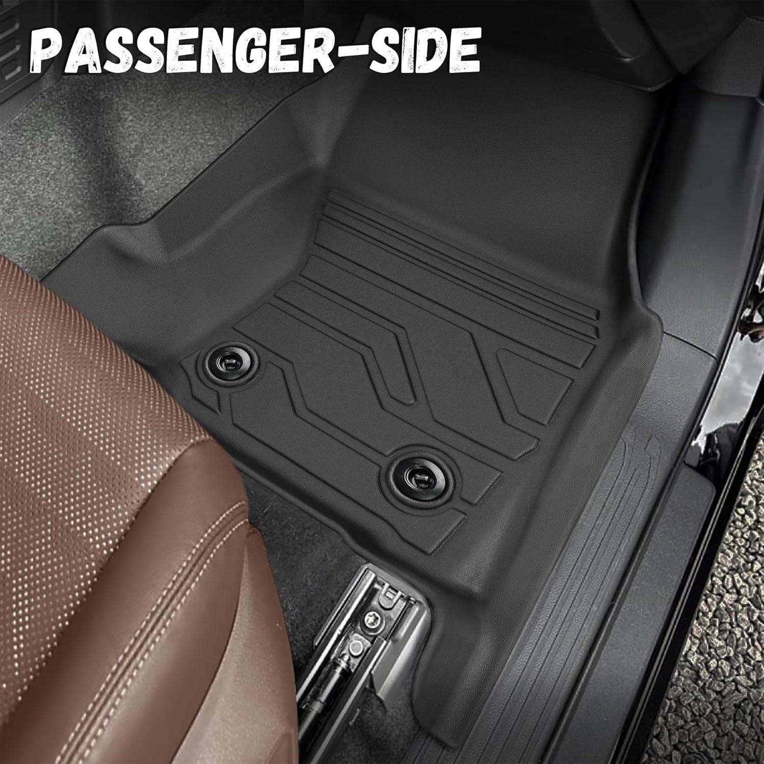 ALL-WEATHER PROTECTION : These Toyota Tacoma floor mats features deep groove design effectively blocks mud and water from entering the vehicles. The convex edge fits snugly on the vehicle sill edge, creating an effective protective barrier to keep the interior clean and safe. Whether it is wet snow, soft beach, rainy weather or dusty environment, it can provide excellent protection
