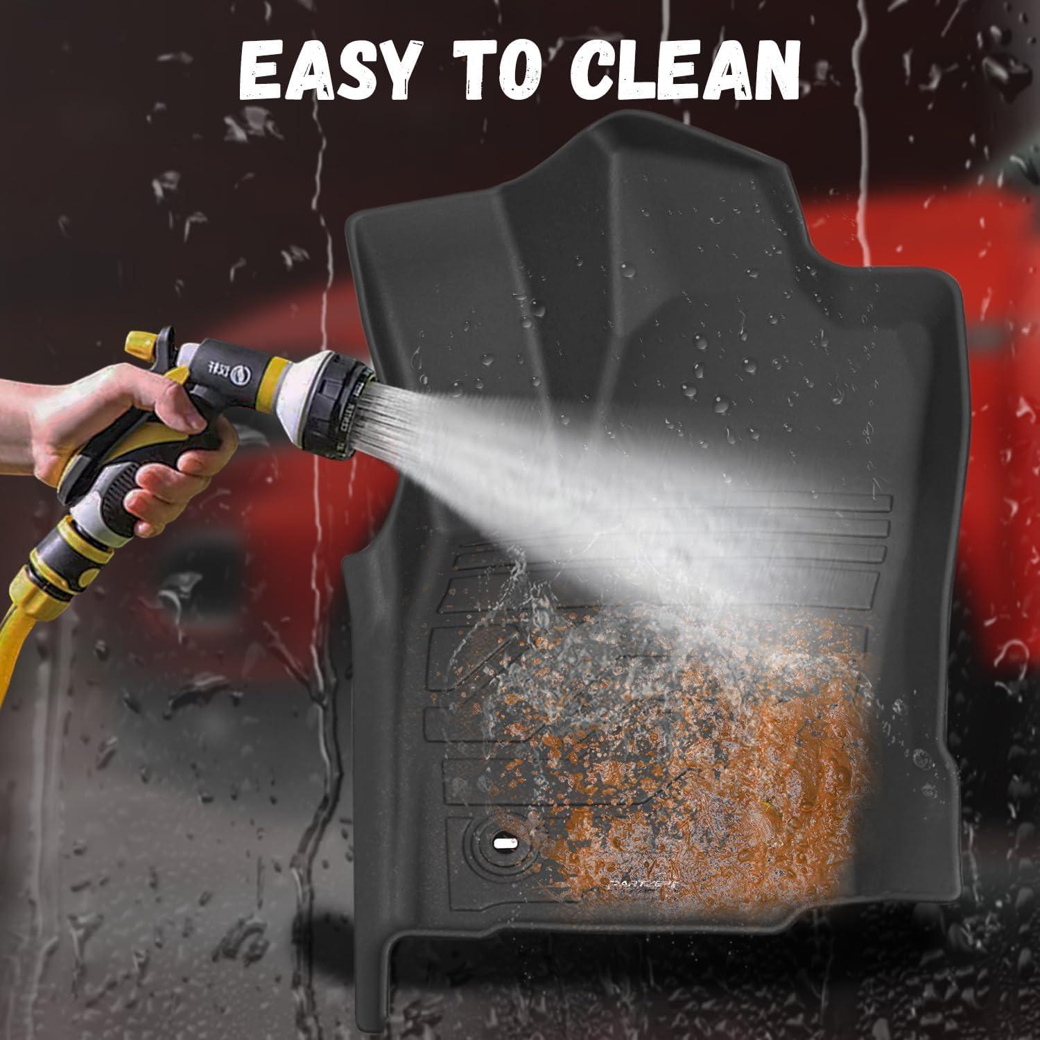 EASY INSTALL & CLEAN : That 2015 Tacoma Double Cab Floor Mats feature press-fit snaps that attach quickly connect to factory floor hooks, easy installation and removal; Waterproof and easy-to-clean TPE material allows for quick and easy cleaning with a gardening water gun or rag