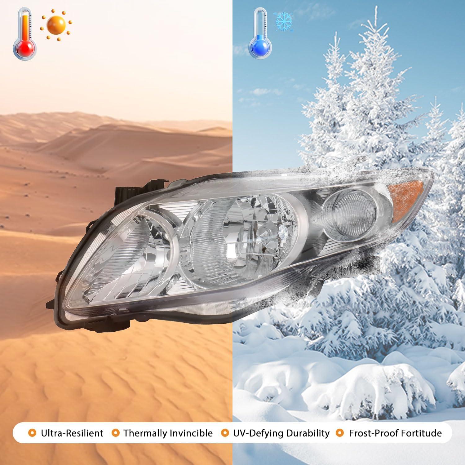 [SUPERIOR MATERIALS] The 2009 toyota corolla headlight housing is constructed using premium-quality materials to ensure durability and reliability. The materials of 2010 Toyota Corolla front light assemblies are UV-resistant and capable of withstanding high temperatures, effectively resisting fading and deterioration during regular use, maintaining long-lasting quality and appearance.